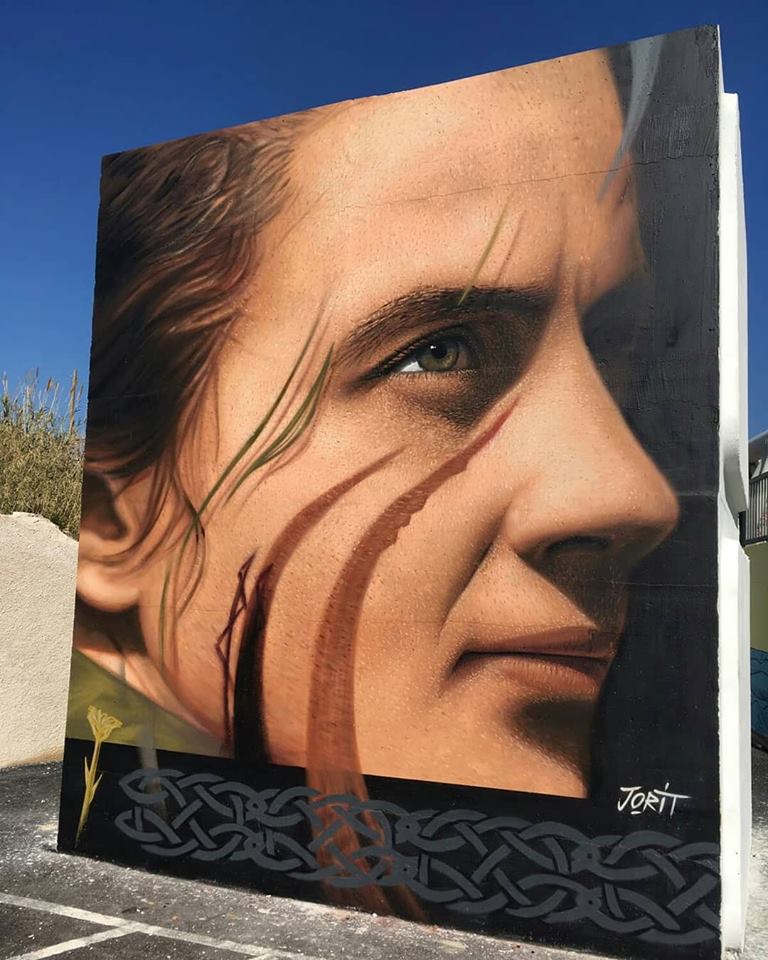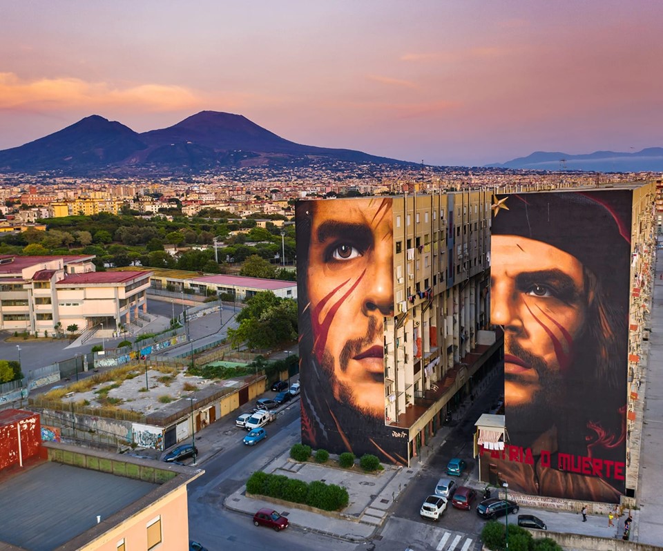 HUMAN TRIBE – Da Maradona a San Gennaro, da Nelson Mandela a Trotula de Ruggiero realizzata nel Park Vinciprova nell’ambito dell’iniziativa MetroCubo Salerno (giusto per citarne alcuni) ciò che li accomuna è l’appartenenza quella che Jorit chiama “Human Tribe”, un’unica comunità umana dove le differenze di sesso, di religione, di cultura e di estrazione sociale, scompaiono nell’universo dell’uguaglianza umana. In questo modo, l’artista napoletano vuole lanciare un vero e proprio messaggio di uguaglianza e di solidarietà. Sono gli stessi personaggi scelti ad essere portatori di messaggi con le loro storie. Attraverso il loro sguardo vivido l’artista vuole esternare la tensione umana che ci accomuna tutti; vuole rendere fruibili messaggi di lotta e di giustizia. Come non ricordare il murale che omaggia Ahed Tamimi, la ragazzina palestinese divenuta simbolo della resistenza dopo uno scontro con un soldato israeliano, murale per il quale lo stesso Jorit fu arrestato a Betlemme. Dunque, attraverso l’arte di Jorit il tratto estetico e di abbellimento di zone urbane anche periferiche, assume le morfologie della comunicazione, diviene messaggio di lotta, di giustizia, ma anche di appartenenza; diviene veicolo di integrazione sociale ed economica.