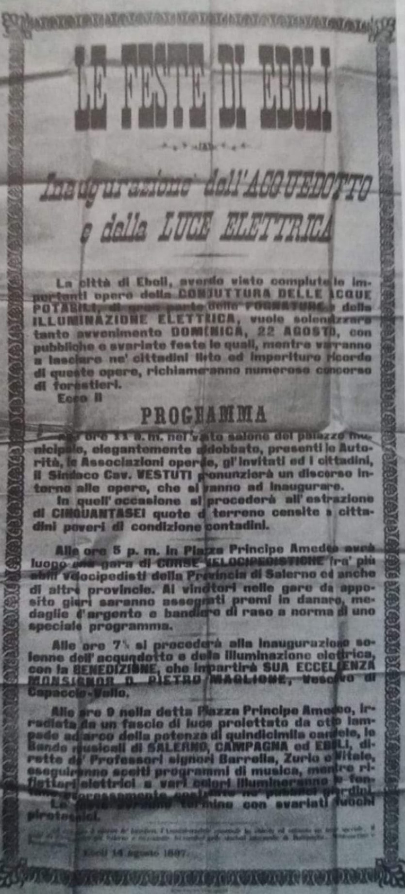 ZI’ FONZ ‘U LAMPIUNARO –Alla fine del 1800 non esisteva la luce elettrica nella città di Eboli e la sera venivano accesi dei lampioni a gas per illuminarla.