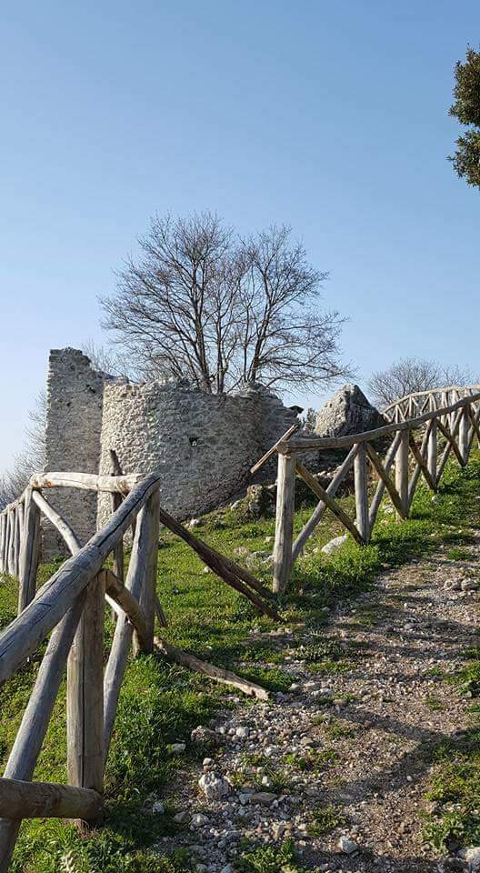 LA STRUTTURA – La fortezza era contornata da una triplice cinta muraria di cui la prima ancora individuabile da alcuni frammenti inglobati nell’attuale urbanizzazione; la seconda, a mezza costa, presenta ancora intatte le torri di guardia e l’ingresso al Castrum; la terza con due torri quadrangolari era posta a custodia del nucleo centrale edificato a massima altezza.