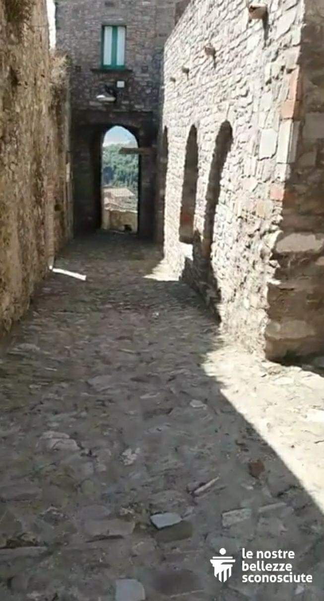 Ripide viuzze d’accesso erano state realizzate solo all’esterno dell’intero caseggiato; sbarramenti progressivi, quasi in forma concentrica e a salire verso la sommità collinare, con portoni rinforzati nelle strette e scoscese strade, realizzavano un sistema di protezione a prova di sfondamento.