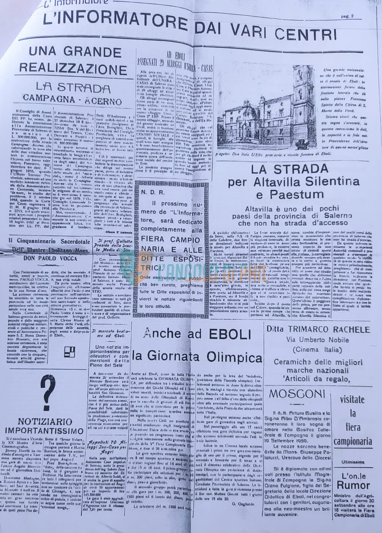 Oggi parliamo di informazione e di due giornali che furono molto importanti per la città di Eboli e i paesi limitrofi a cavallo tra il 1940 e il 1960, ovvero “La Rinascita Democratica” e “L’Informatore”.