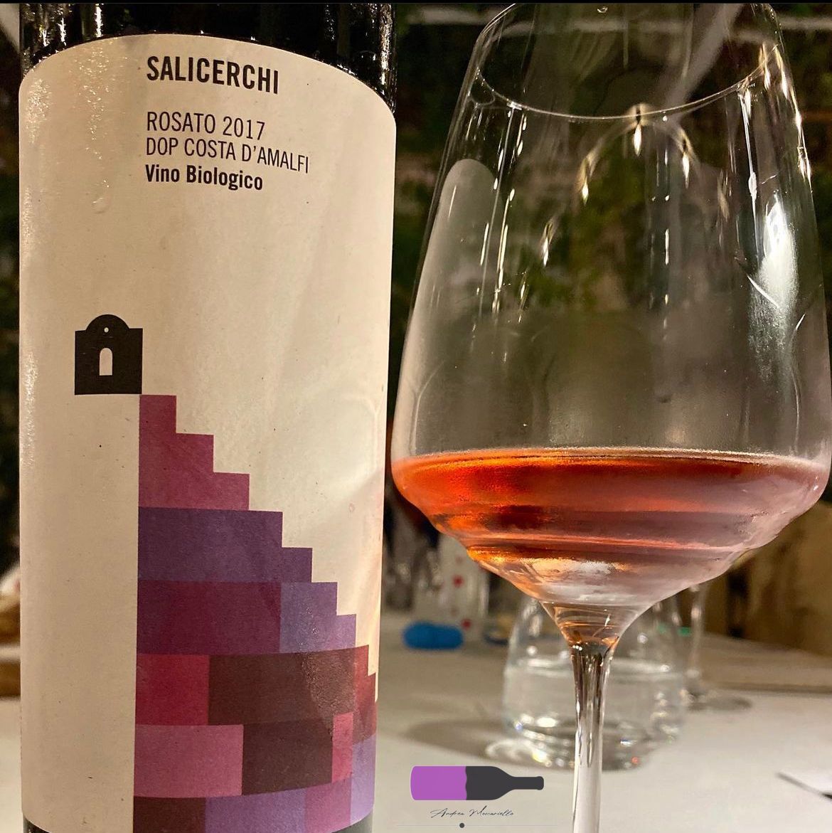 TASTING & ABBINAMENTO – Diverse sono le etichette dell’azienda ma quella che mi ha rapito particolarmente è questa: il SALICERCHI, ovvero un rosato diverso già dal colore, ottenuto da una pressatura soffice di Piedirosso, Aglianico e Tintore. Il colore cerasuolo intenso, dove al naso predomina la frutta rossa e sotto spirito, al gusto notevole, alcolicità ben bilanciata con la sapidità. Consigliatissimo l’abbinamento con piatti di pesce soprattutto con insalata di mare, alici fritte, orata all’acqua pazza o zuppa di pesce
