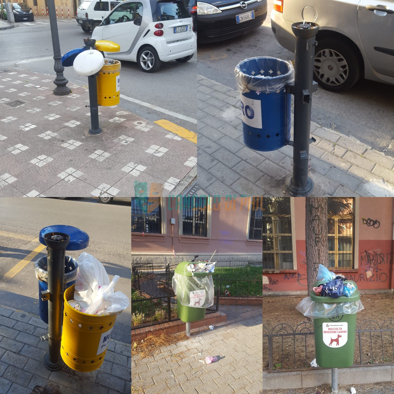 La raccolta differenziata non funziona. Di seguito una panoramica delle zone del centro città che necessiterebbero di un intervento.