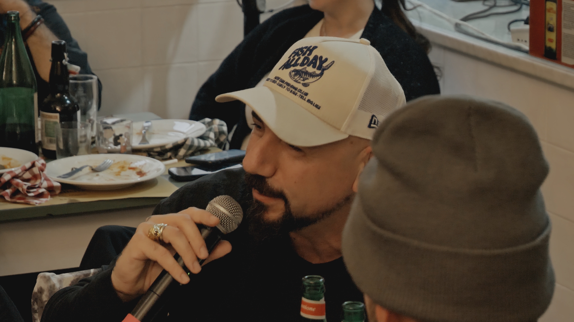 “Un’idea nata per festeggiare l’hip hop. Avevo invitato degli amici rapper di Napoli a pranzare dal Vicolo dell’Alleria e vedendoci tutti in questo clima di festa e familiarità ho avuto un’illuminazione. Il proprietario è amante della musica e della giocosità, un locale che riflette il suo spirito, un luogo aperto alla sperimentazione ma fedele alla tradizione, il posto perfetto per realizzare la mia idea”.