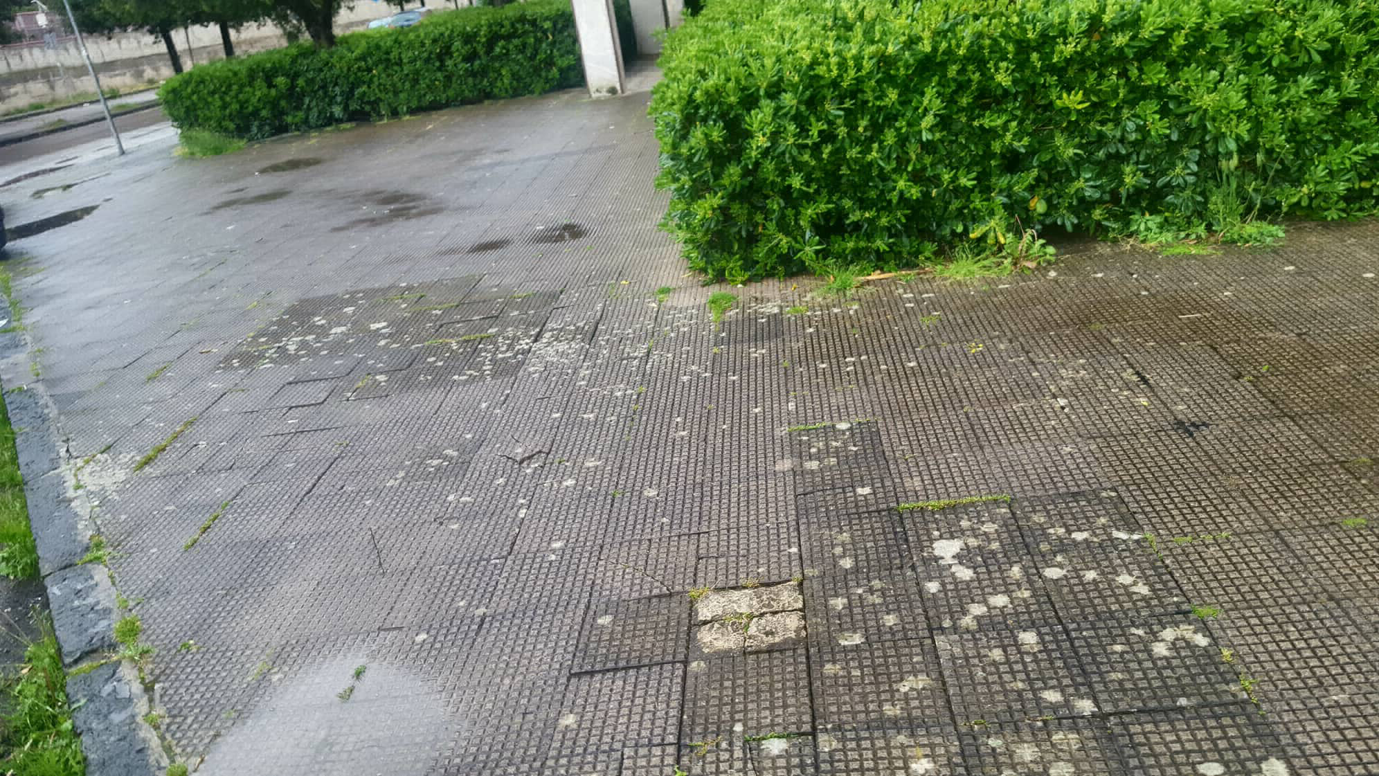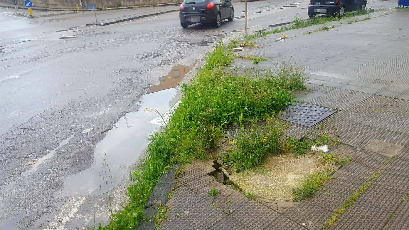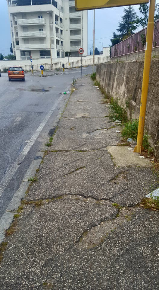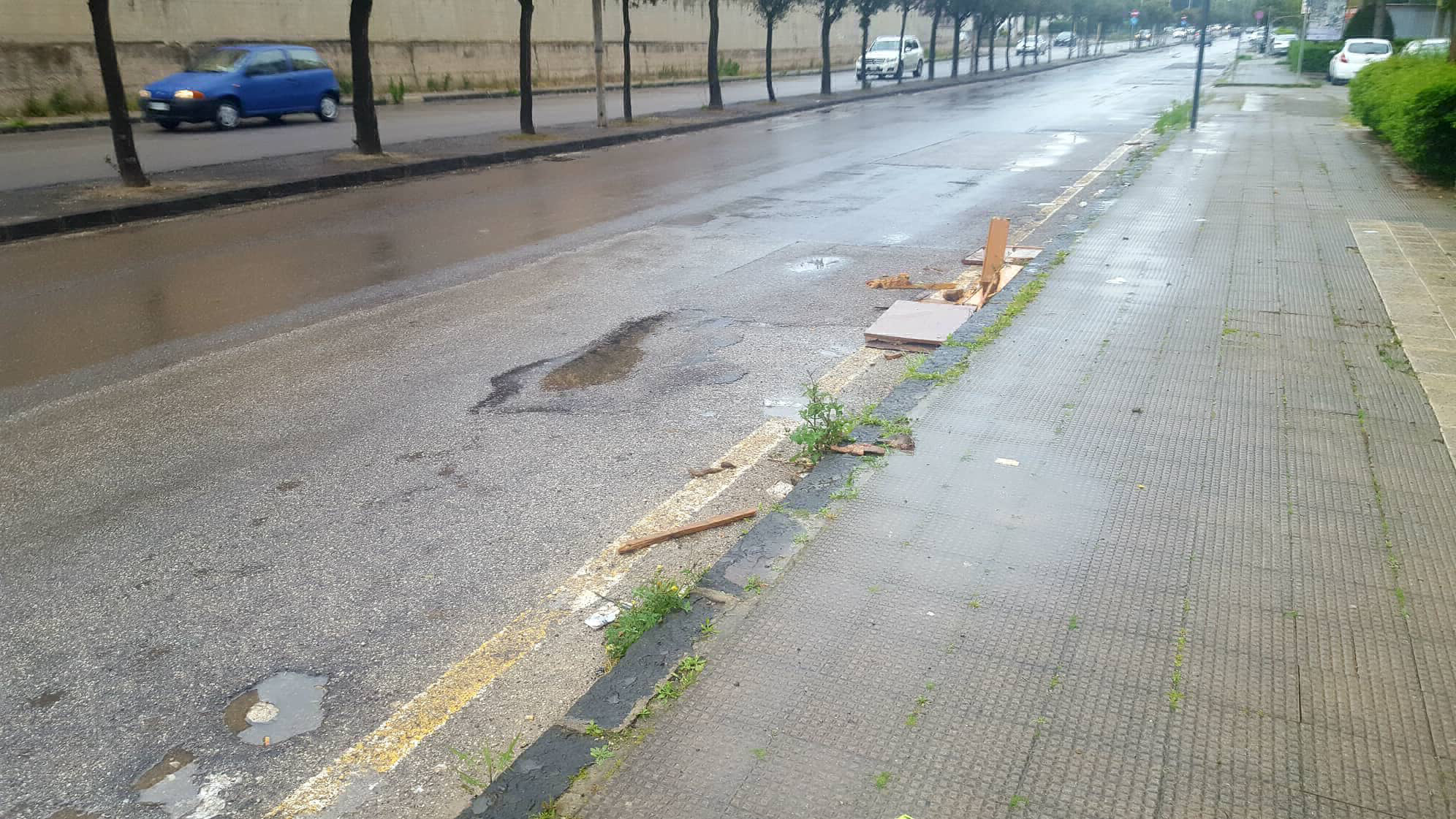 Lungo il Viale della Libertà bisogna camminare con gli occhi che guardano a terra: tra mattonelle “ballerine”, cemento e pietre consumati e erbacce folte, i marciapiedi esistono ancora solo grazie all’incuria più totale.