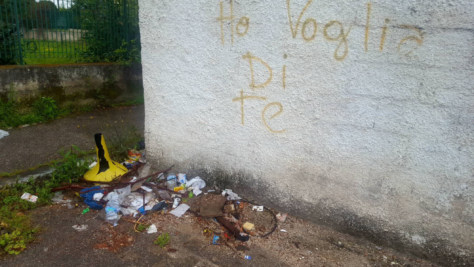 Forse abbandonate o raccattate incivilmente da qualcuno – magari dai raccoglitori di indumenti usati -, ad oggi la zona risulta “ripulita”. Pochi metri più in là, quello che sembra essere un seggiolino auto per bambini staziona nello stesso punto già da diverse settimane.