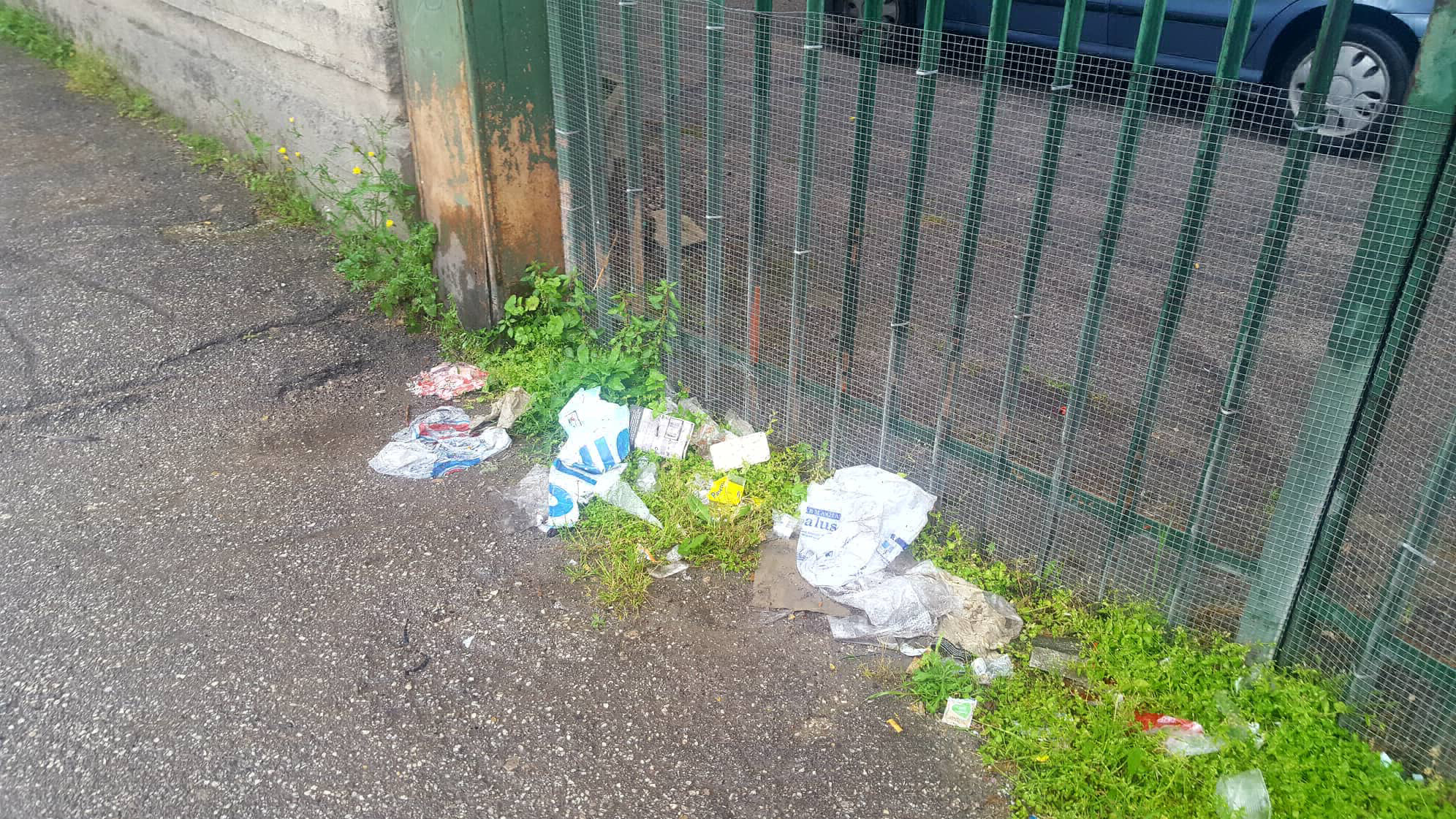 Già svoltando alla destra di via Gonzaga, costeggiando l’istituto statale “Besta-Gloriosi”, ci si imbatte nei rifiuti accumulati sotto le pareti e lungo i bordi dei marciapiedi; rifiuti distribuiti per tutta la carreggiata aspettano di degradarsi con il tempo e le intemperie.