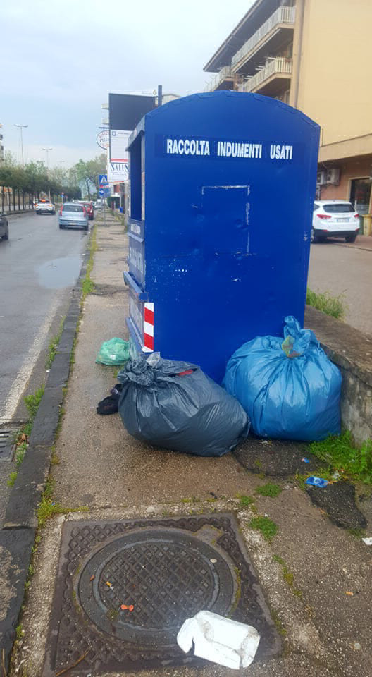 Mentre, da quello che si può notare dalle foto che seguono, c’è chi non ha capito qual è la funzione dei raccoglitori di indumenti usati.