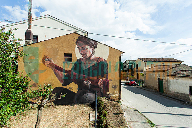 GENESI – Anche Bonito è diventato da qualche anno palcoscenico di street art. Proprio qui, infatti, è stato realizzato il murale classificato al terzo posto tra quelli più belli al mondo secondo la classifica Widewalls. Figlia dello street artist argentino Francisco Bosoletti l’opera “Genesi” è stata realizzata a maggio 2018 su tre case abbandonate formando un’unica figura eterea. A dicembre dello stesso anno l’opera è stata votata come terza dalla prestigiosa rivista specializzata in street art tra 50 murales realizzati in