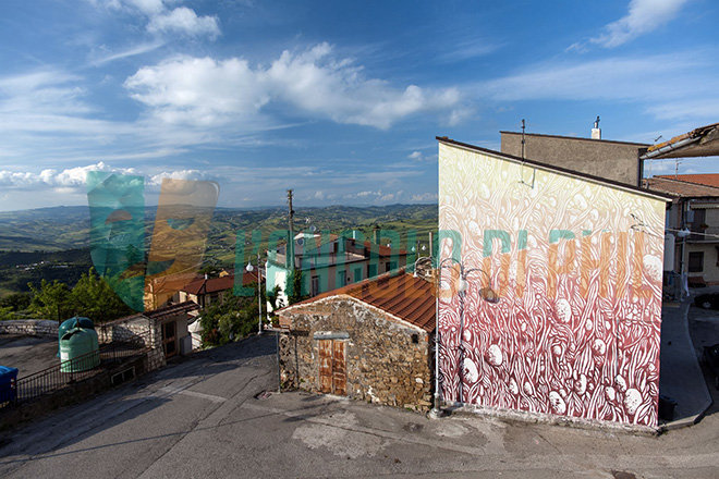 Nella sua bellezza quasi trascendentale l’opera “Genesi” fa parte di una rassegna di street art organizzata in modo aperiodico dal Collettivo Boca, Associazione di esperti ed appassionati di arte urbana, ricercatori e studiosi che, ispirati dal quartiere argentino tutto dedicato ai murales da cui hanno mutuato il nome, hanno deciso di arricchire di arte urbana un piccolo paesino come Bonito. Lo scopo è quello di sfruttare quegli spazi urbani ormai abbandonati per creare condivisione e senso di comunità.