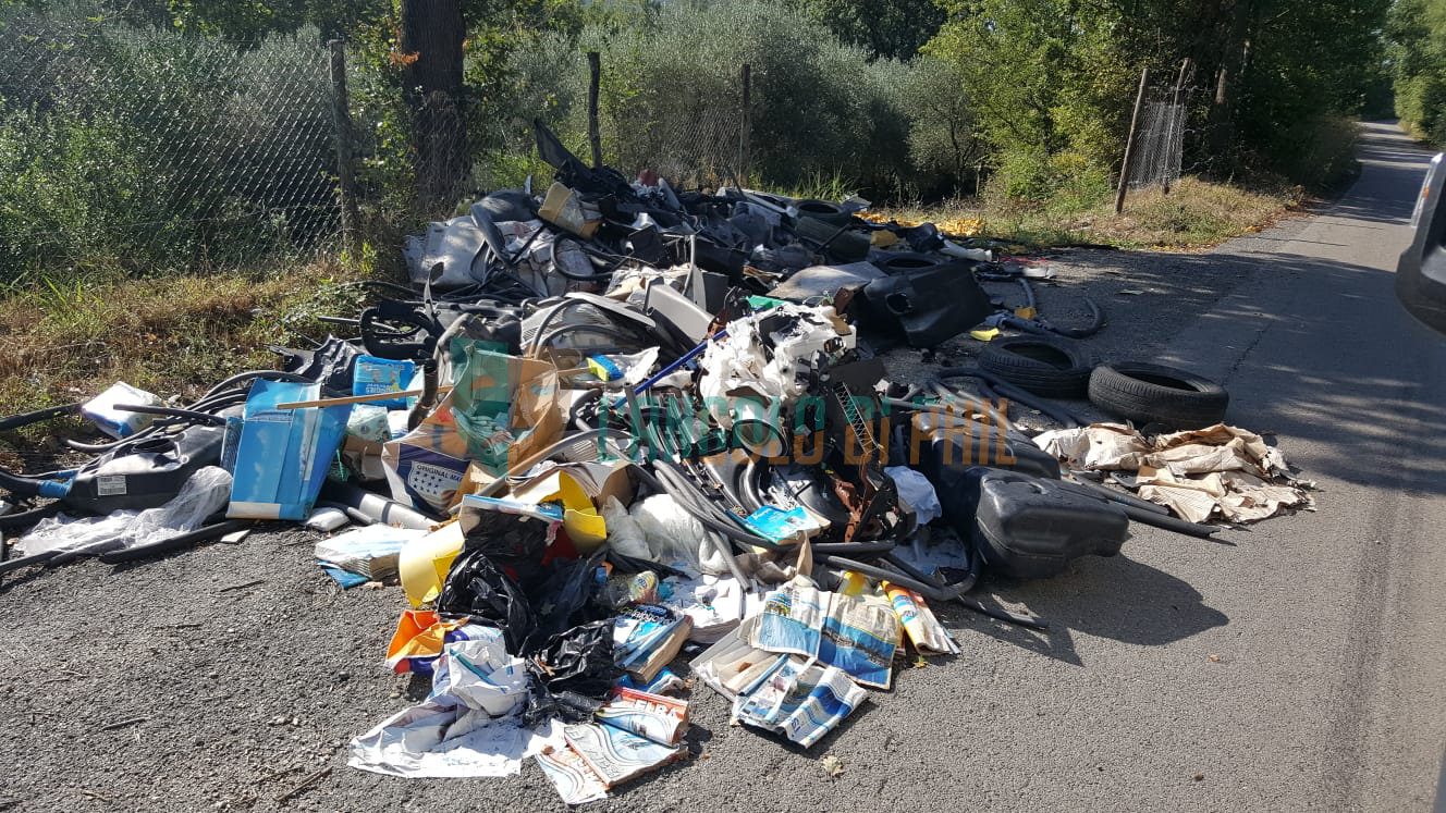 La strada in questione si trova al centro tra l’area di servizio e l’autostrada del Mediterrano E45 e il cumulo di rifiuti è stato notato anche da altri passanti. Probabilmente, essendo una strada poco trafficata e sprovvista di videosorveglianza, i criminali ambientali pensavano che la loro azione sarebbe passata inosservata ma si sbagliavano. Percorrendo questo tratto di strada la prima ‘montagna’ di rifiuti in cui ci si imbatte è composta per la maggior parte da rifiuti provenienti da officine meccaniche, infatti c’è un grande quantità di pezzi di automobili: paraurti, sportelli, cavi, tubi, pezzi di motore, specchietti e tutto ciò che vi può venire in mente possa far parte di una carrozzeria di un auto lo troverete sicuramente qui, nel caso abbiate bisogno…