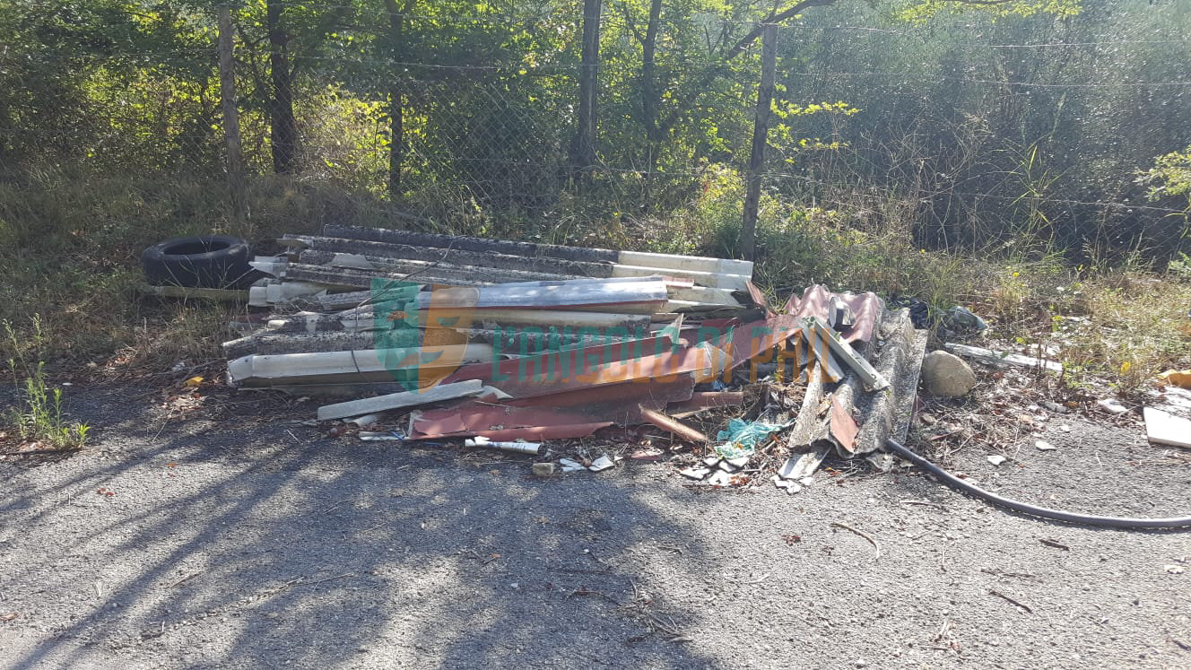Continuando qualche metro più avanti è possibile rinvenire un’altra discarica, decisamente più piccola, ma dal potenziale nocivo decisamente più alto. Infatti, è possibile trovare un cumulo d’amianto nel bel mezzo della strada lasciato lì come se nulla fosse in barba alle leggi vigenti sullo smaltimento e noncuranti dell’altissimo rischio per l’uomo nell’abbandonare una quantità abbastanza elevata di eternit come se nulla fosse.