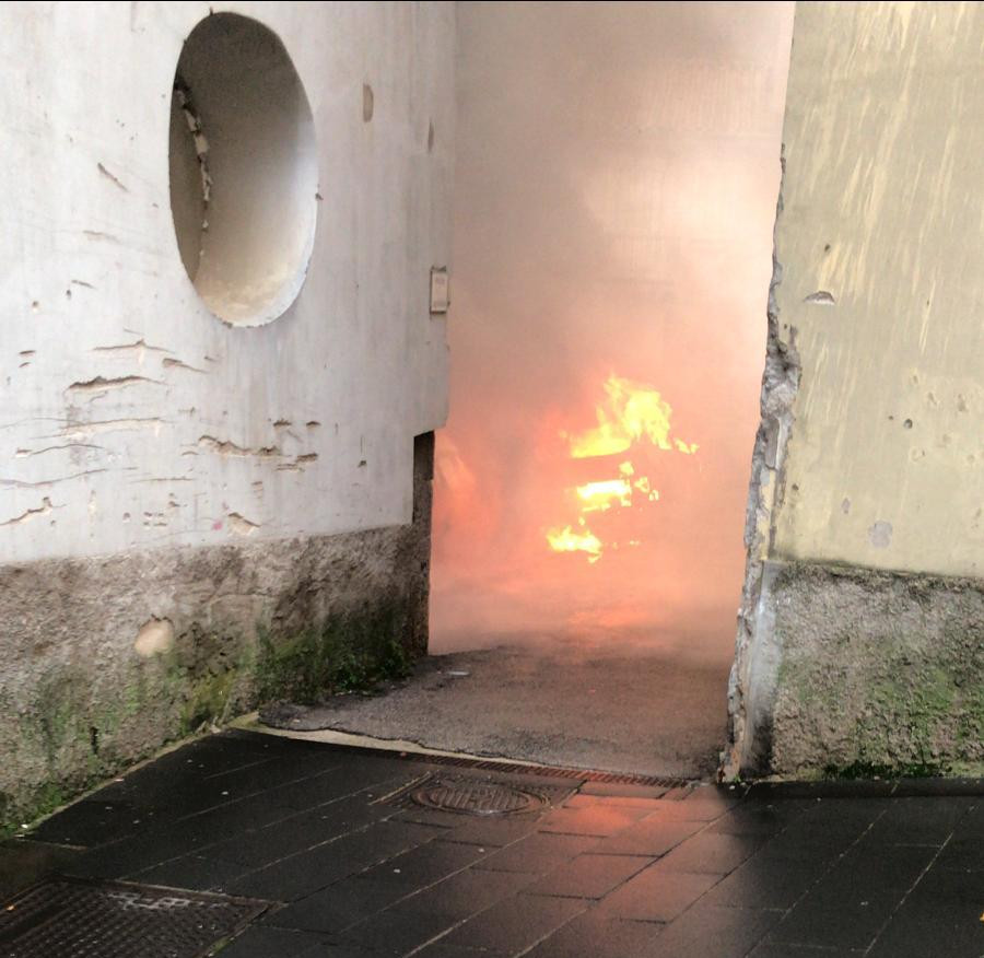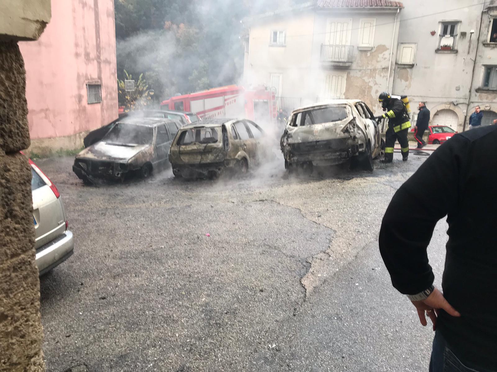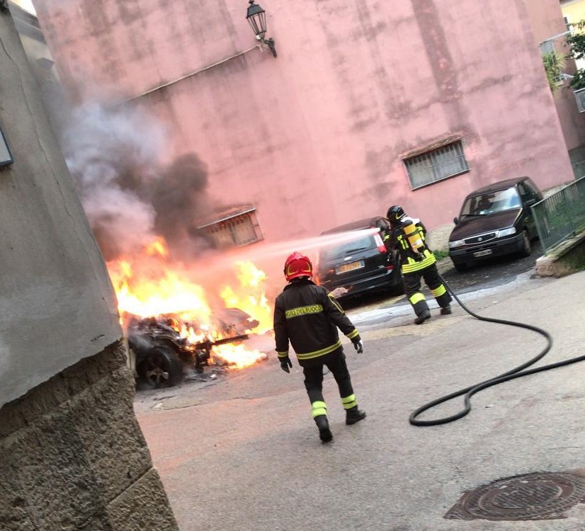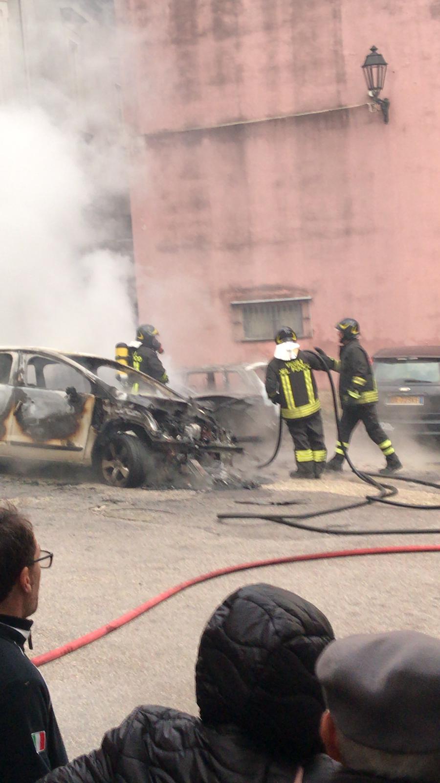 AGGIORNAMENTO ORE 18 – L’incendio non è di natura dolosa ma, a causare il rogo, è stato il malfunzionamento di un’auto a metano, che ha coinvolto anche le altre vetture parcheggiate nelle vicinanze
