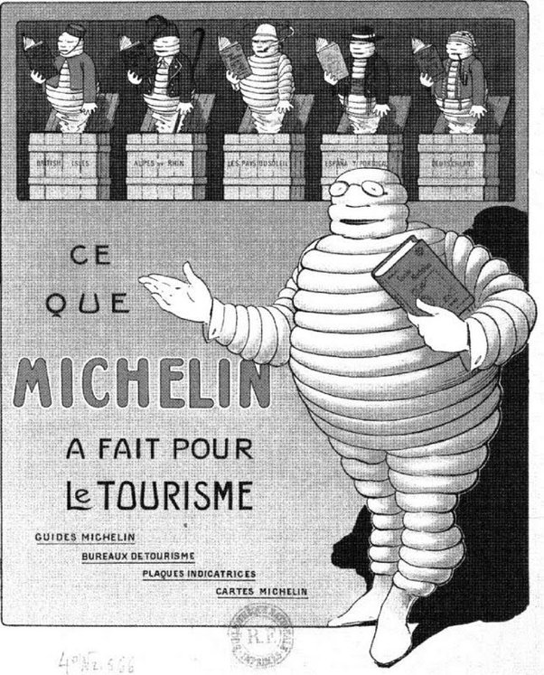 Ed è qui, nello stesso anno, che si aguzza l’ingegno dei fratelli: come si fa a far comprare più auto in modo da vendere più pneumatici? E così nacque una guida turistica per gli automobilisti francesi, stampata in 35mila copie e distribuita gratuitamente. L’idea era semplice quanto geniale: invogliare le persone a spostarsi, a viaggiare, per aumentare la domanda di automobili e di conseguenza di pneumatici.