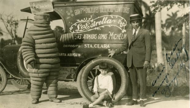 Inizialmente simbolo delle campagne pubblicitarie dei pneumatici, soprattutto per biciclette, ben presto fu affiliato ai migliori ristoranti, come simbolo della qualità della gomma che era in grado di portarti fino al miglior locale francese.