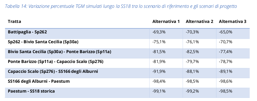 Al fine di valutare i volumi ed effettuare delle proiezioni sugli scenari di traffico nel caso l’opera sia realizzata non viene tenuto in considerazione il traffico tra gli svincoli di Agropoli Nord e Agropoli Sud. Nella situazione attuale su questa tratta si generano spesso code in entrambi i sensi, per la scarsa ricettività delle strade interne ai due svincoli. Non è chiaro come questa situazione possa variare nel caso la nuova strada entri in funzioni, considerando che essa prevede l’aumento dei volumi di traffico ma nel tratto in questione sarebbe realizzata solo una riqualificazione, lasciando la capacità di gestione dei volumi di traffico sostanzialmente inalterata.