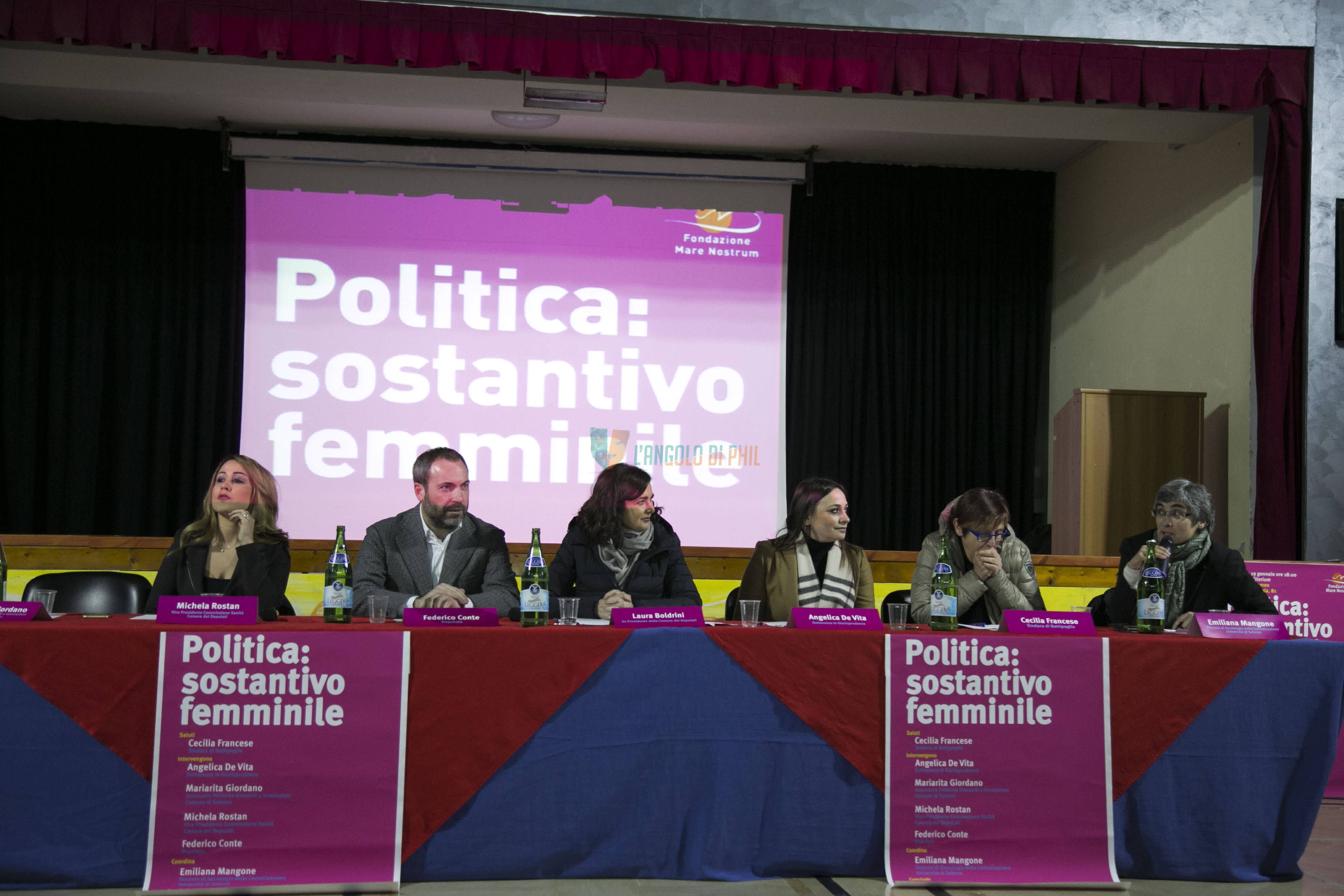 Si è svolto ieri presso l’Auditorium di San Bartolomeo di Eboli il convegno “Politica: Sostantivo al Femminile” con la presenza del sindaco di Battipaglia, Cecilia Francese, Angelica De Vita, dottoressa in Giurisprudenza, Mariarita Giordano, assessore alle Politiche Giovanili e Innovazioni del Comune di Salerno, Michela Rostan, Vice Presidente della Commissione Sanità della Camera dei Deputati, e il deputato di Liberi e Uguali Federico Conte.