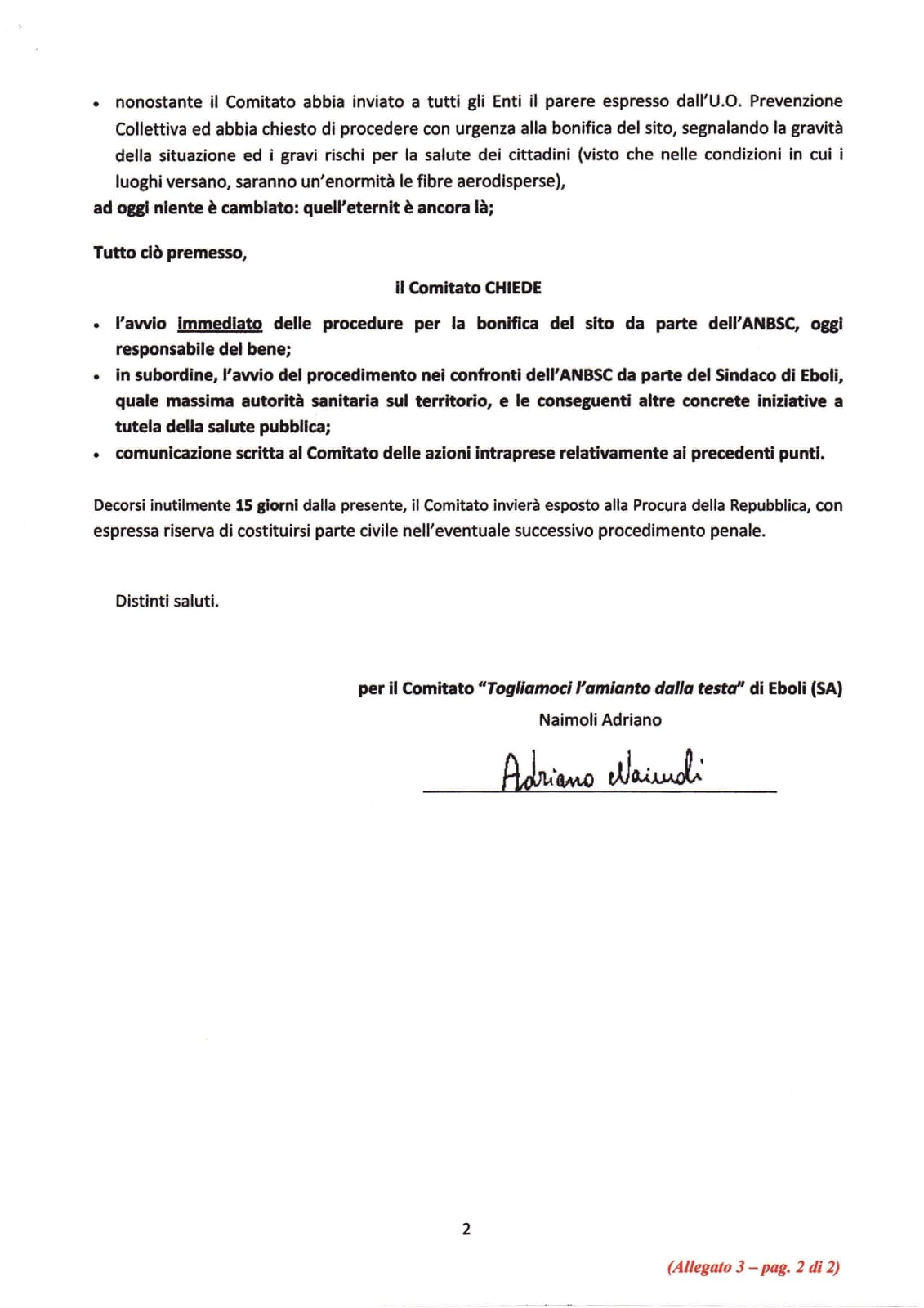 In attesa che quel ‘a giorni inizieranno i lavori’ si trasformi da flebile promessa in una solida realtà, gli anni passano e l’amianto continua a sgretolarsi.