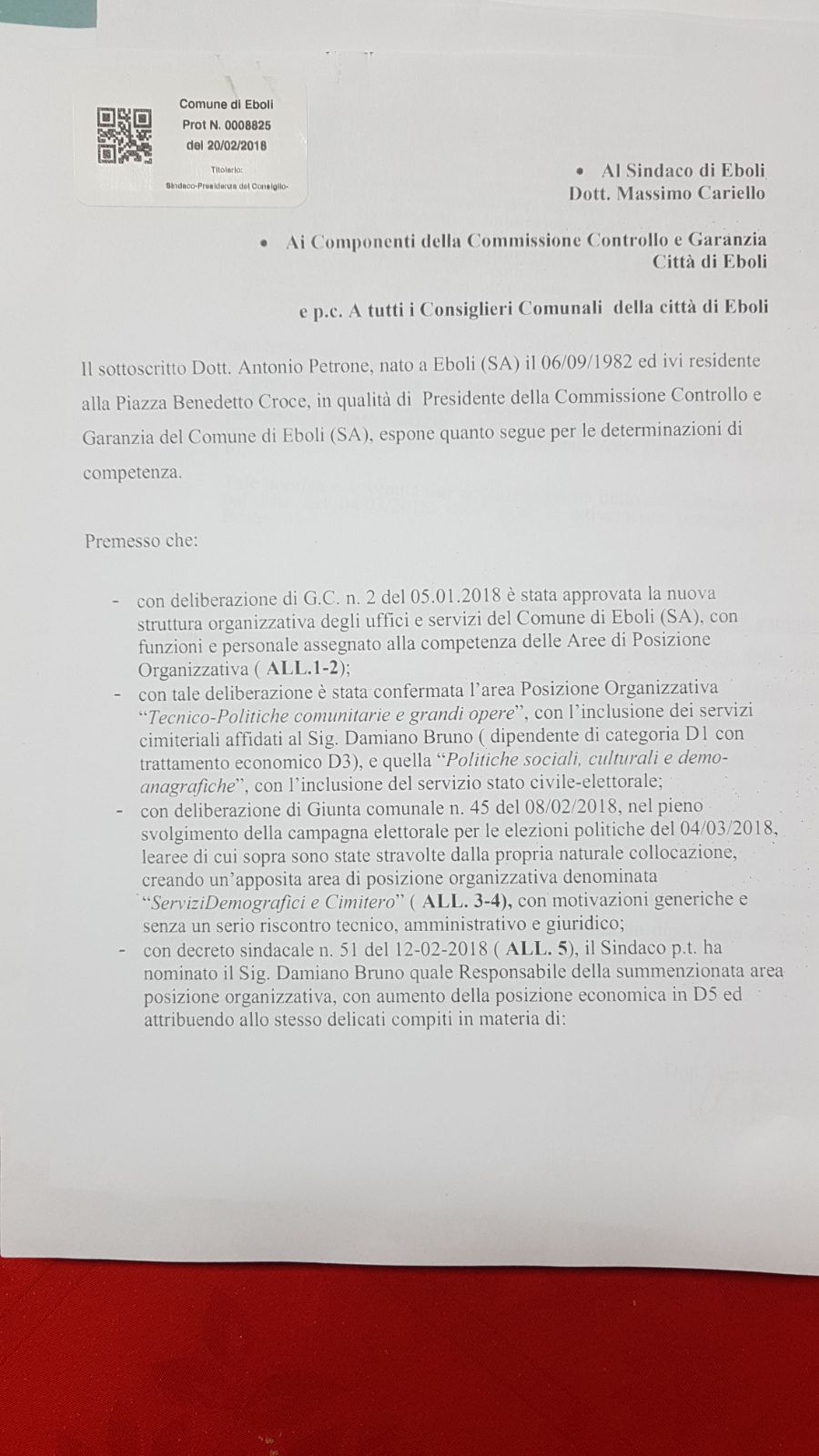 Perchè proprio il signor Damiano Bruno è stato nominato Resp. Settore Stato Civile- Elettorale quando i dipendenti con qualifica D1 al Comune di Eboli sono “appena” 35?