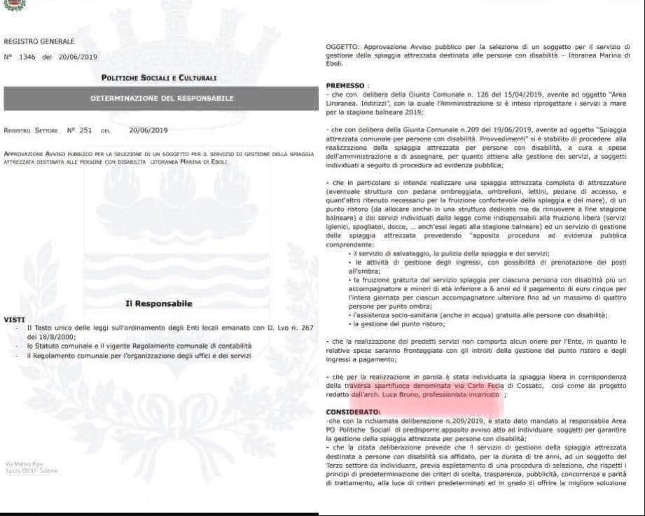 Ora è stata individuata una nuova spiaggia dove realizzare di nuovo la struttura e, di conseguenza, è stato redatto un nuovo progetto con un nuovo progettista, indicato come l’architetto Luca Bruno. Peccato che il professionista ebolitano non sia a conoscenza di nulla e si sia ritrovato il suo nome in documenti ufficiali dalla sera alla mattina: