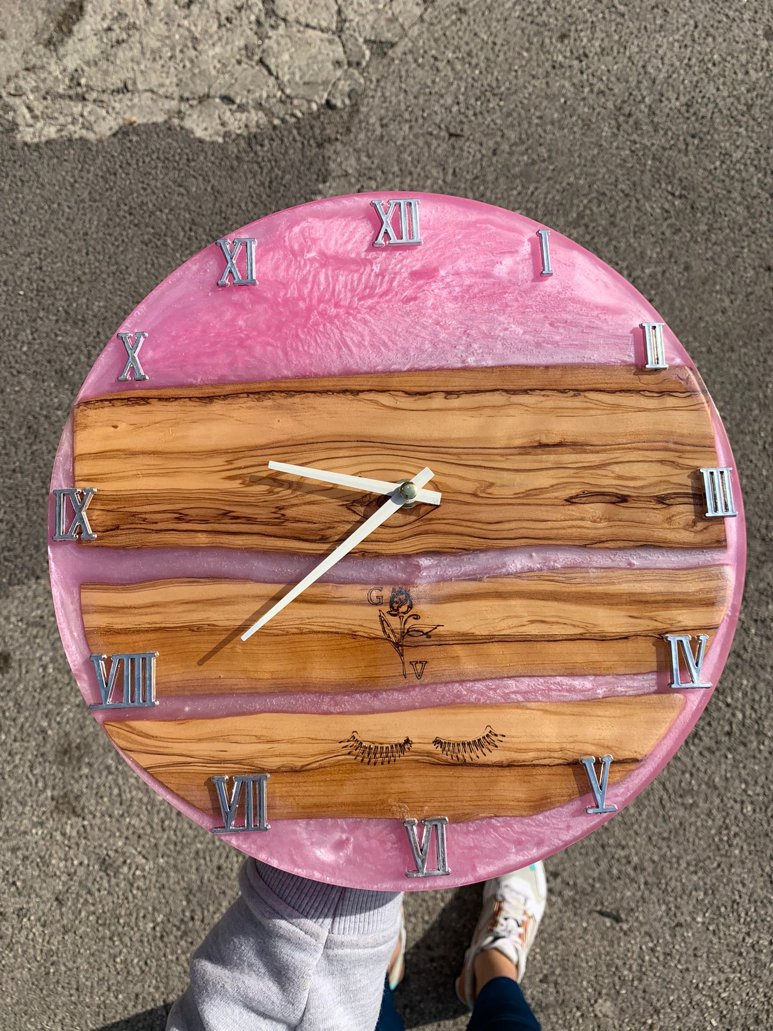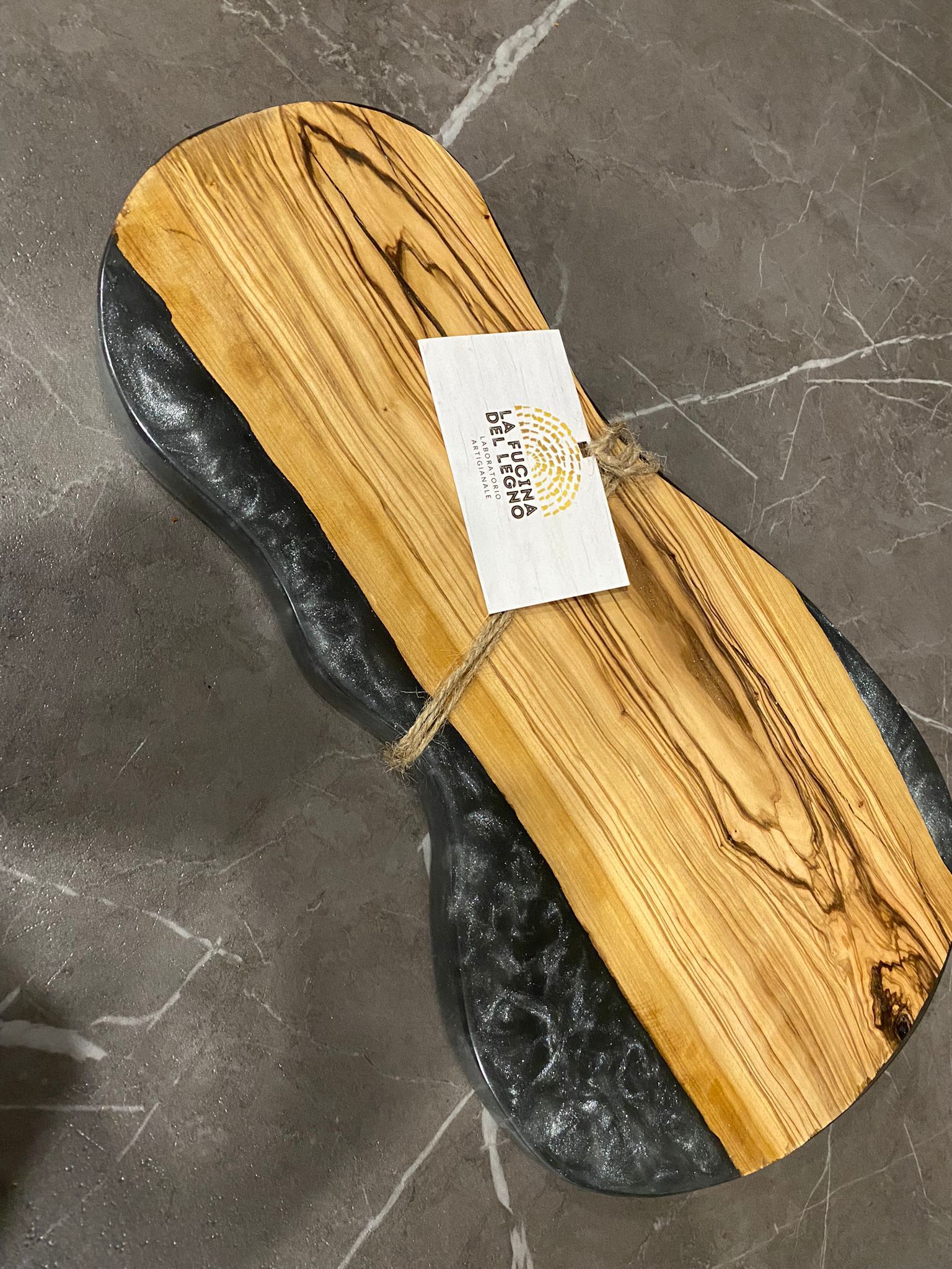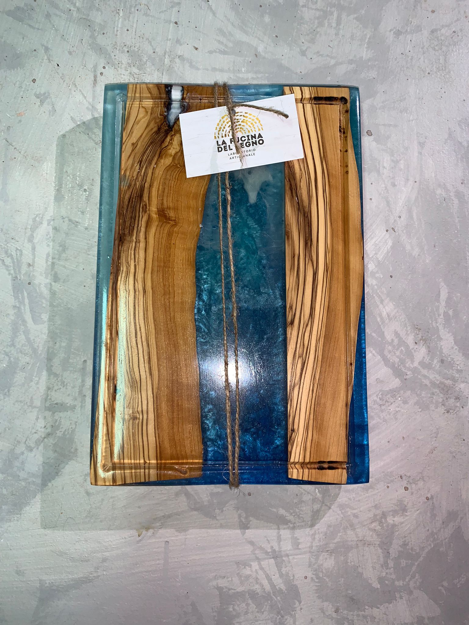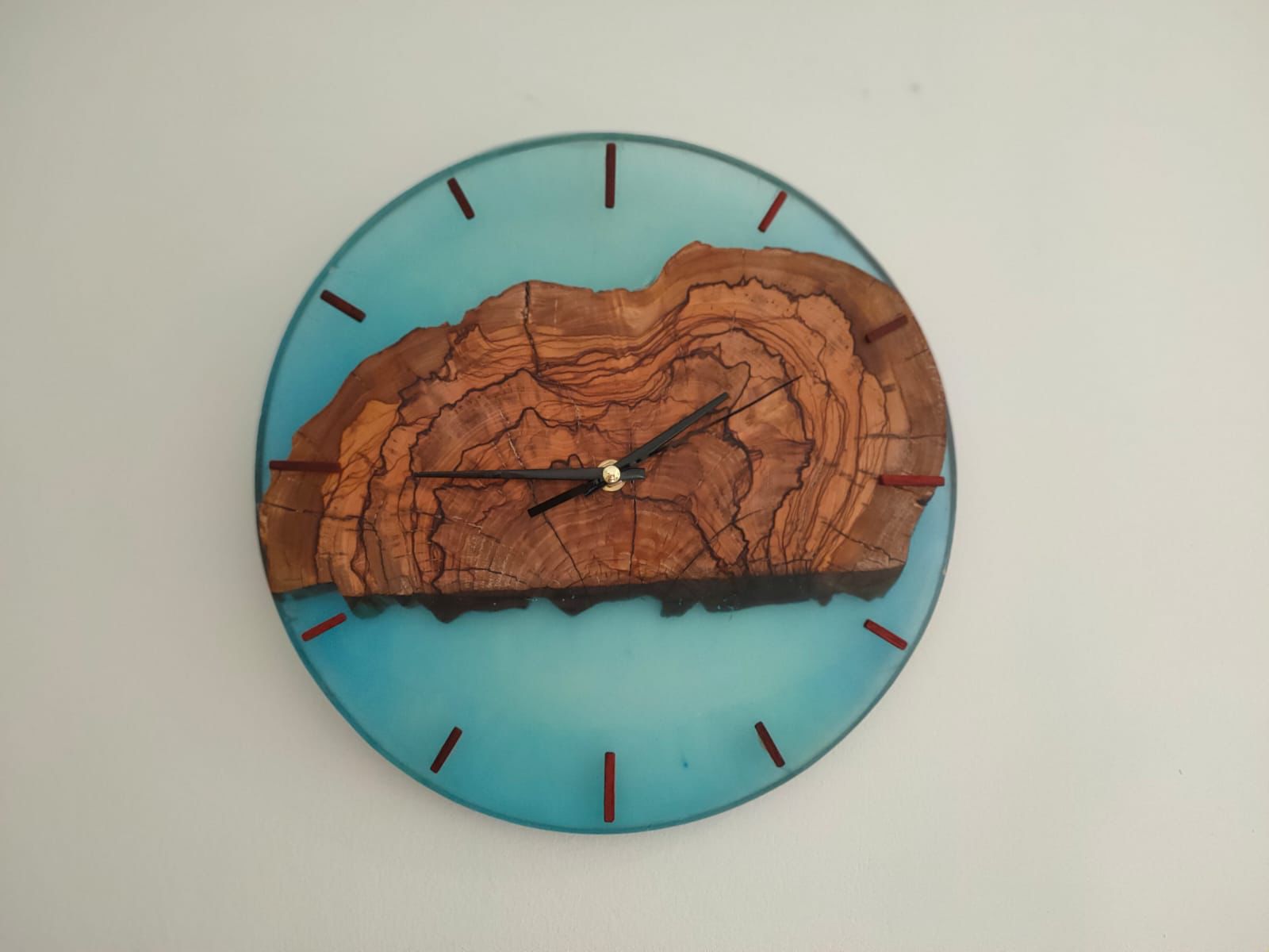 “Le nostre lavorazioni sono spesso create con legno di ulivo stagionato 30 anni e resina epossidica trasparente, con la possibilità di aggiungere pigmenti per colorare la resina a nostro piacimento e creare vari effetti diversi, uno dei più famosi è l’effetto “mare”, con le onde e la resina che richiama i colori del mare. Il prodotto che al momento mi sta più a cuore è l’orologio. Perché da un pezzo di legno nasce un prodotto che scandisce per noi la cosa più importante, il TEMPO”