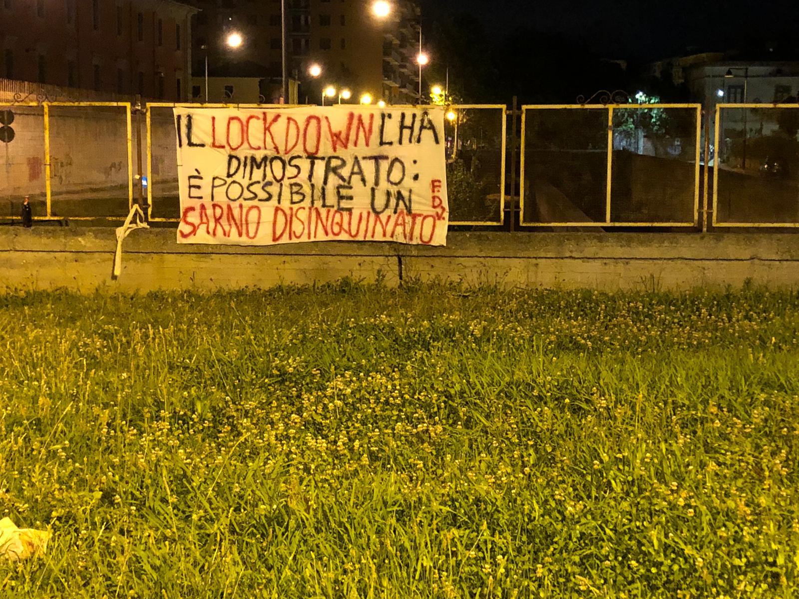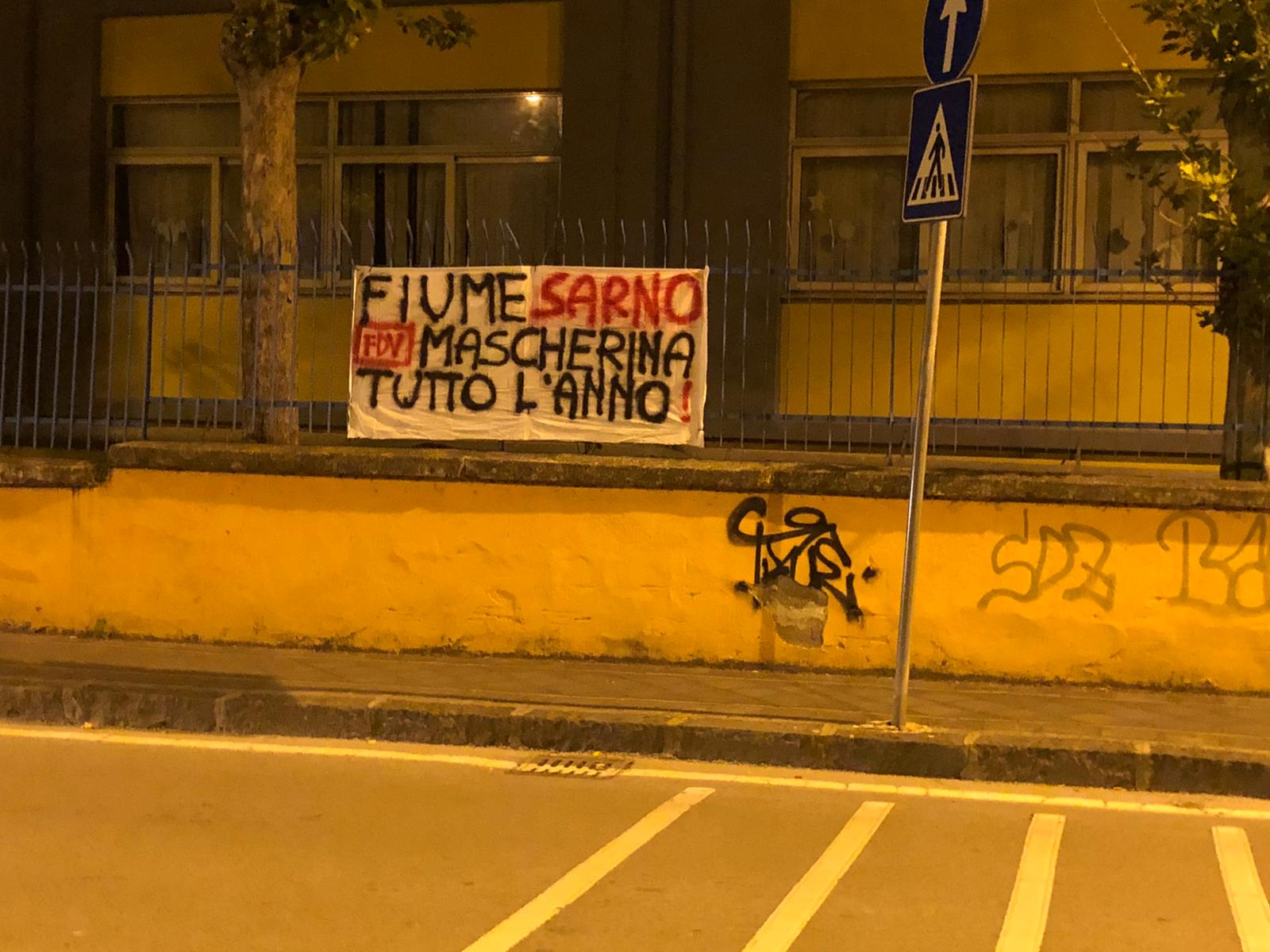 NOCERA INFERIORE – Continuano intanto a Nocera Inferiore le campagne di sensibilizzazione da parte del Comitato “La fine della vergogna” con l’affissione di striscioni lungo il corso dell’Alveo Comune, in particolare in quelle zone dove i palazzi residenziali si affacciano sul fiume. Si ribadisce a tal proposito l’impatto dell’inquinamento delle acque sulla salute dei cittadini, con i seguenti slogan: ”Fiume Sarno, mascherina tutto l’anno?” oppure “Solofra fabbrica di tumori”.