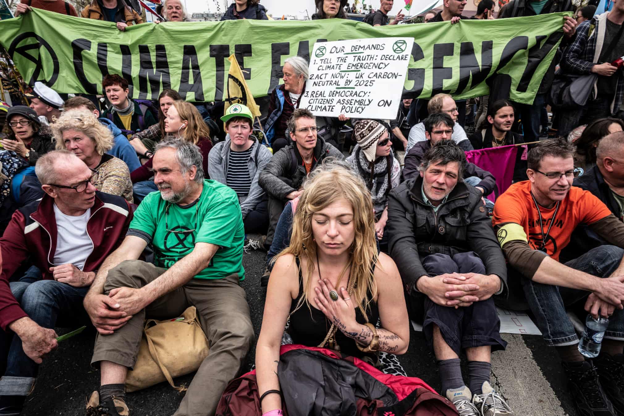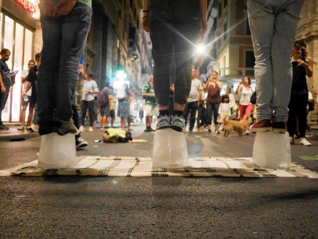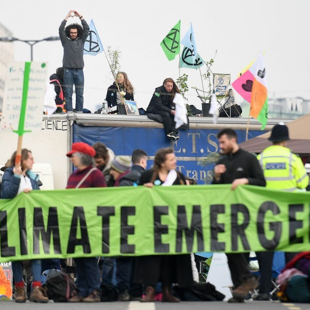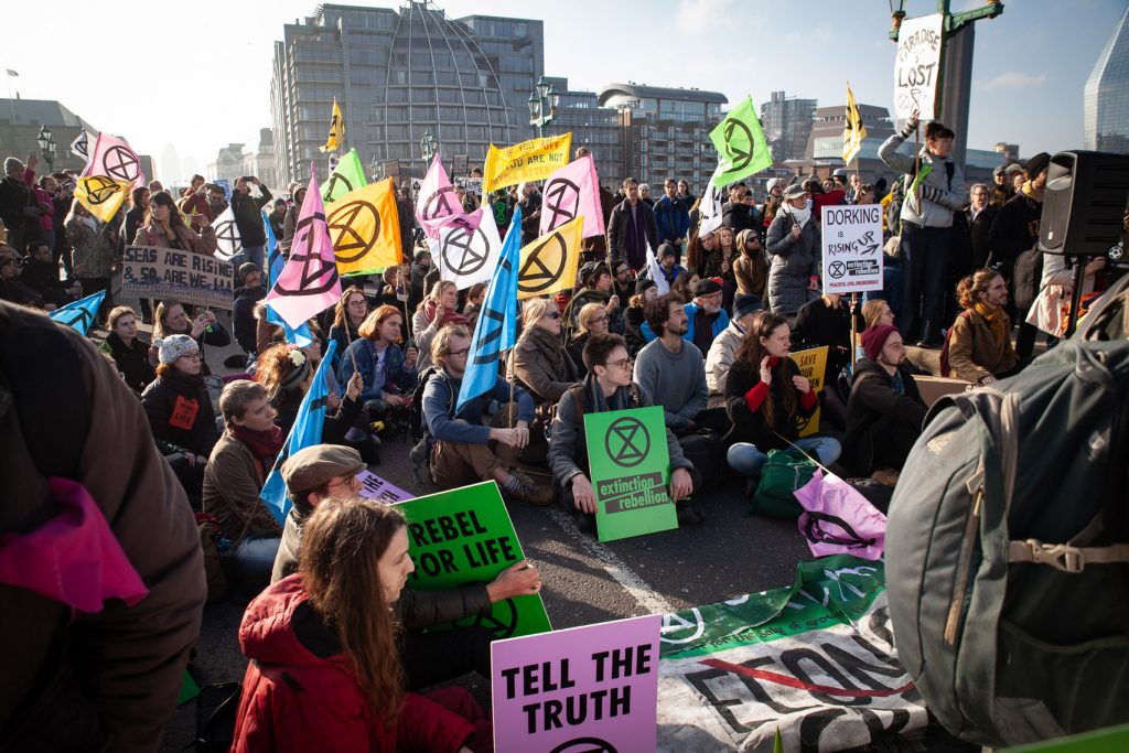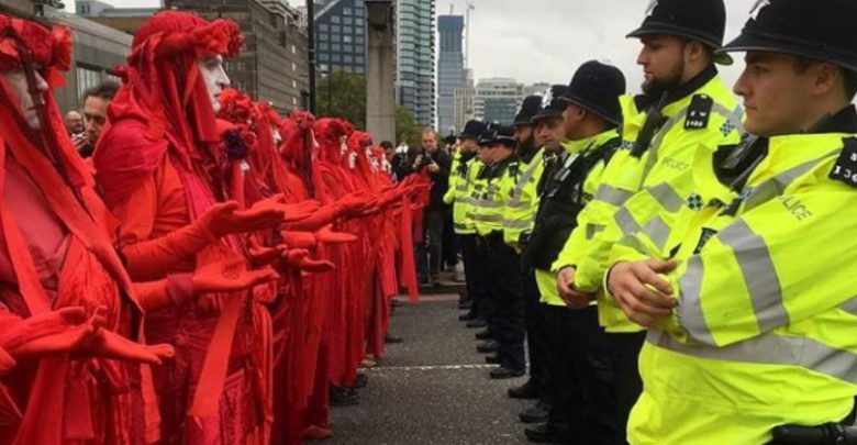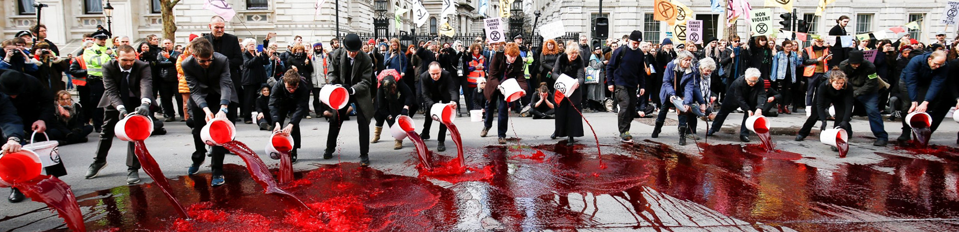 Ancora più forte è l’utilizzo dell’arte performativa: i messaggi dell’XR si caricano di una fortissima valenza simbolica in grado di evocare nella mente e nella coscienza dello spettatore immagini catastrofiche del futuro della natura umana. Ed infatti, il movimento si caratterizza per la sua teatralità e per il potere comunicativo dei suoi attori che molto probabilmente mutuano le pratiche performative dei tipici movimenti di matrice libertaria. Sin dalle prime manifestazioni dell’anno scorso gli attivisti inglesi hanno dato vita sui ponti e per le strade di Londra a delle vere e proprie opere performative: dalla simulazione del funerale dell’ambiente al blocco dei ponti e dell’entrata del Parlamento Inglese a Buckingham Palace, dagli arresti di massa allo sciopero della fame.