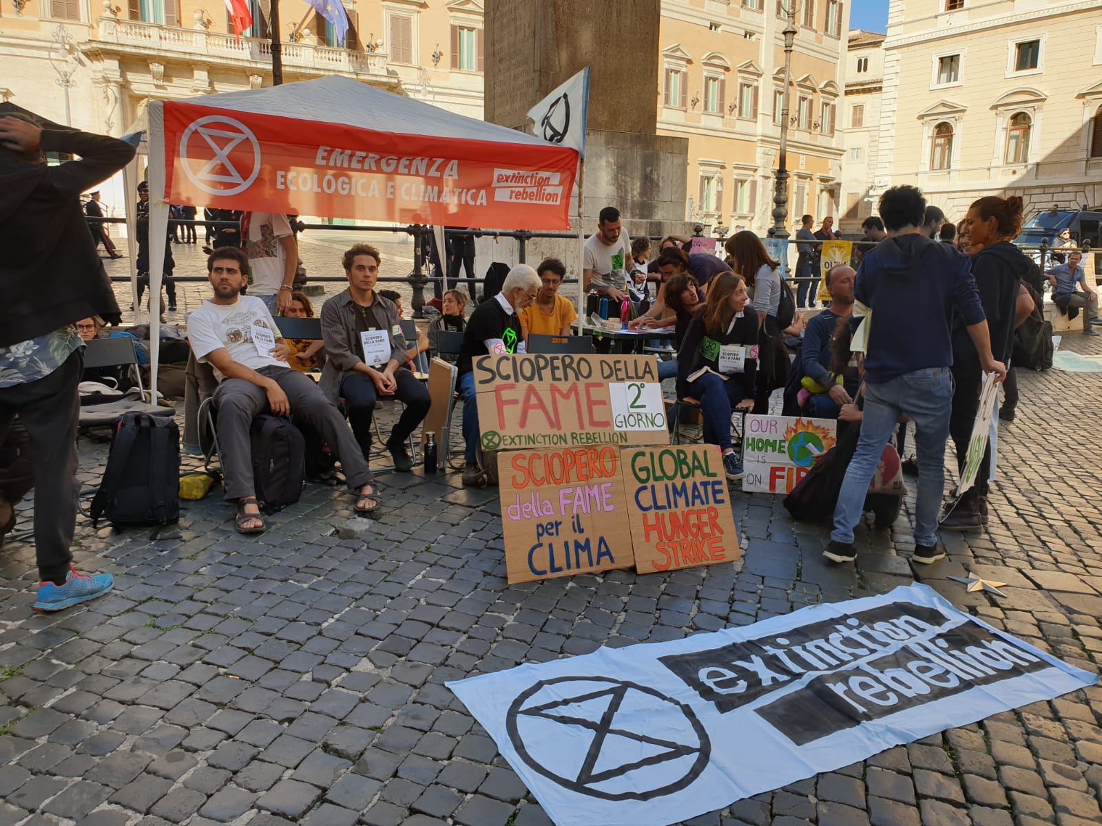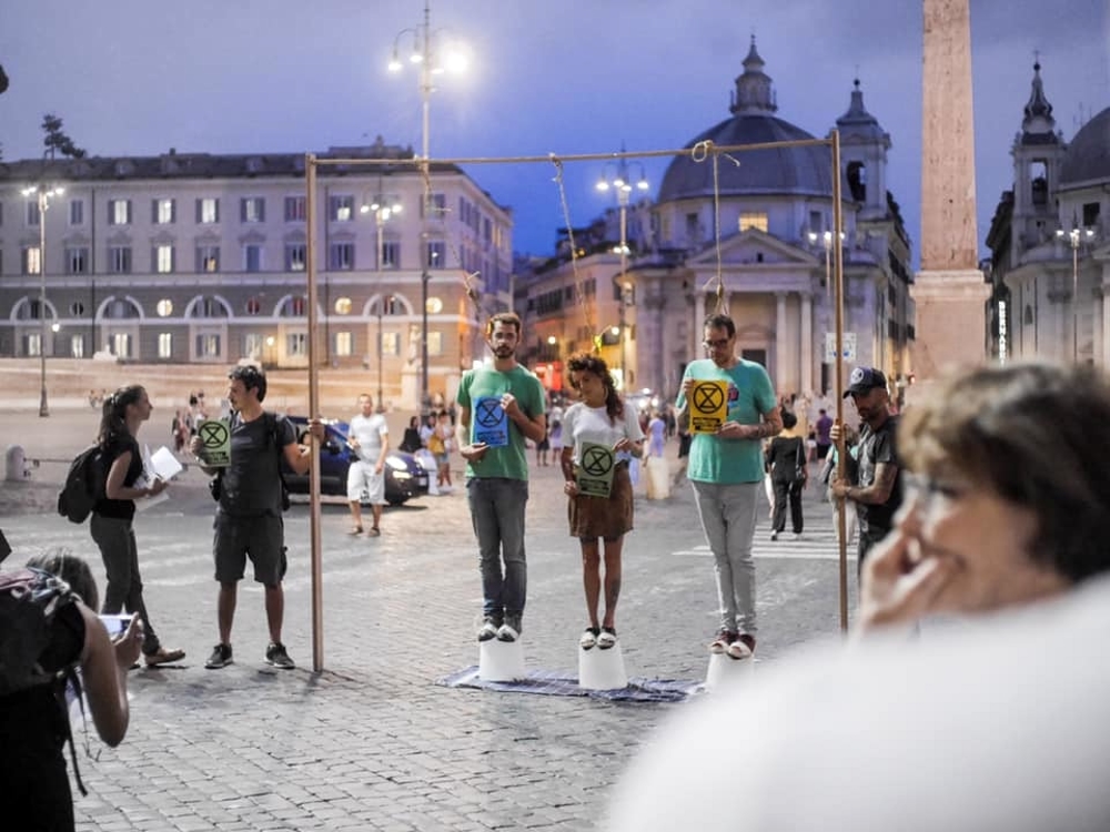 XR ITALIA – A Roma, oltre all’impeccabile intervento di Padre Alex Zanotelli, i manifestanti hanno messo in scena una vera e propria rappresentazione della distruzione dell’umanità. Davanti a Montecitorio prima alcuni attivisti vestiti in giacca e cravatta evocando l’economia basata sulle fonti fossili hanno versato sangue finto su quattro ragazzi. Poi, altri ragazzi sono arrivati con secchi d’acqua e spugne, e hanno lavato via il sangue, abbracciando alla fine gli altri. Inoltre, sempre a Roma Michael Stripe, ex leader del gruppo pop rock REM ha tenuto un lungo intervento in cui ha dichiarato di devolvere all’ organizzazione ambientalista il ricavato dalla vendita del libro fotografico “Your Capricious Soul”.
