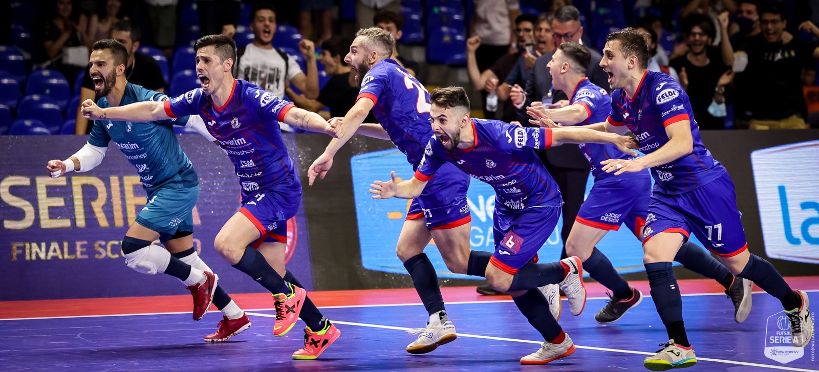 Una gara infinta al Palasele di Eboli che vede trionfare le volpi in Gara 1 della finale Scudetto 2022 del futsal italiano. Una partita terminata sul risultato di 1-1 nei tempi regolamentari e decisa solo ai calci di rigore (6-5). Una vittoria dedicata a Felice Di Domenico, padre del presidente rossoblù, scomparso pochi giorni fa e uno dei pionieri del commercio ebolitano. Adesso è solo una vittoria che separa la Feldi da uno storico tricolore e per conquistarlo dovrà compiere l’ultima grande impresa, vincere in casa dell’Italservice Pesaro.