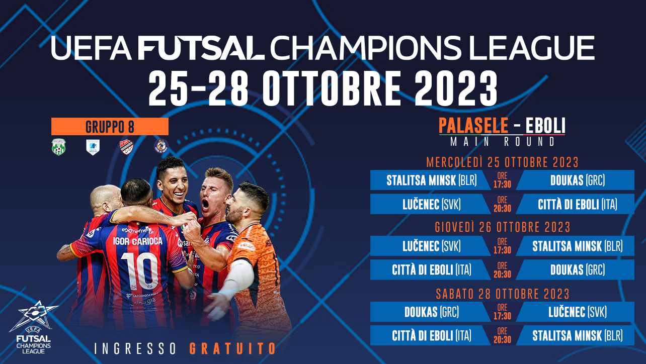 FELDI EBOLI C5 – Dopo il primo ko stagionale subito ieri sera sul campo del Meta Catania, la Feldi Eboli è pronta ad immergersi nella settimana che la vedrà disputare la UEFA Futsal Champions League. Al Palasele di Eboli, infatti, il 25, 26 e 28 ottobre, le volpi ebolitane si giocheranno il Main Round della massima competizione europea per club dove affronteranno gli sloveni del Lubenec, i greci del Doukas e i bielorussi dello Stalitsa Minsk.