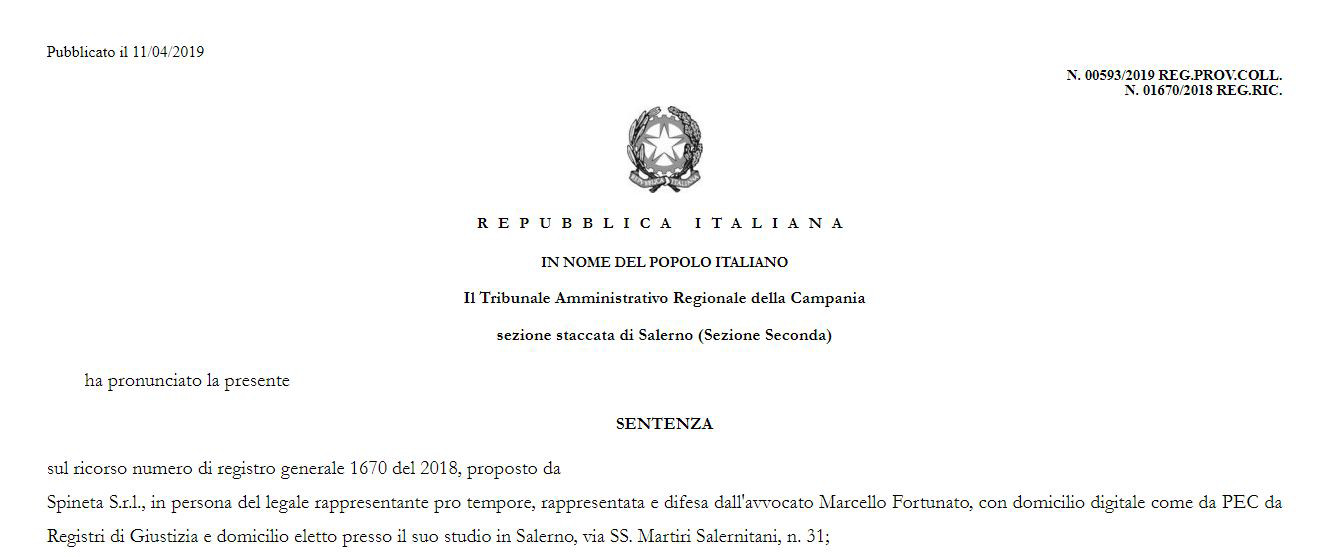 Dopo la sentenza del TAR del Gennaio 2019 che ha riconosciuto a Spineta srl un interesse tutelabile alla definizione dell’iter lottizzatorio, il comune ha dovuto portare a termine il procedimento con determinazione espressa sulla stipula della convenzione. Sempre a Gennaio 2019 la maggioranza portò in Consiglio Comunale l’approvazione di uno schema di Convenzione tipo per gli ex contenitori industriali con la previsione del 30% riservato alle ERS.