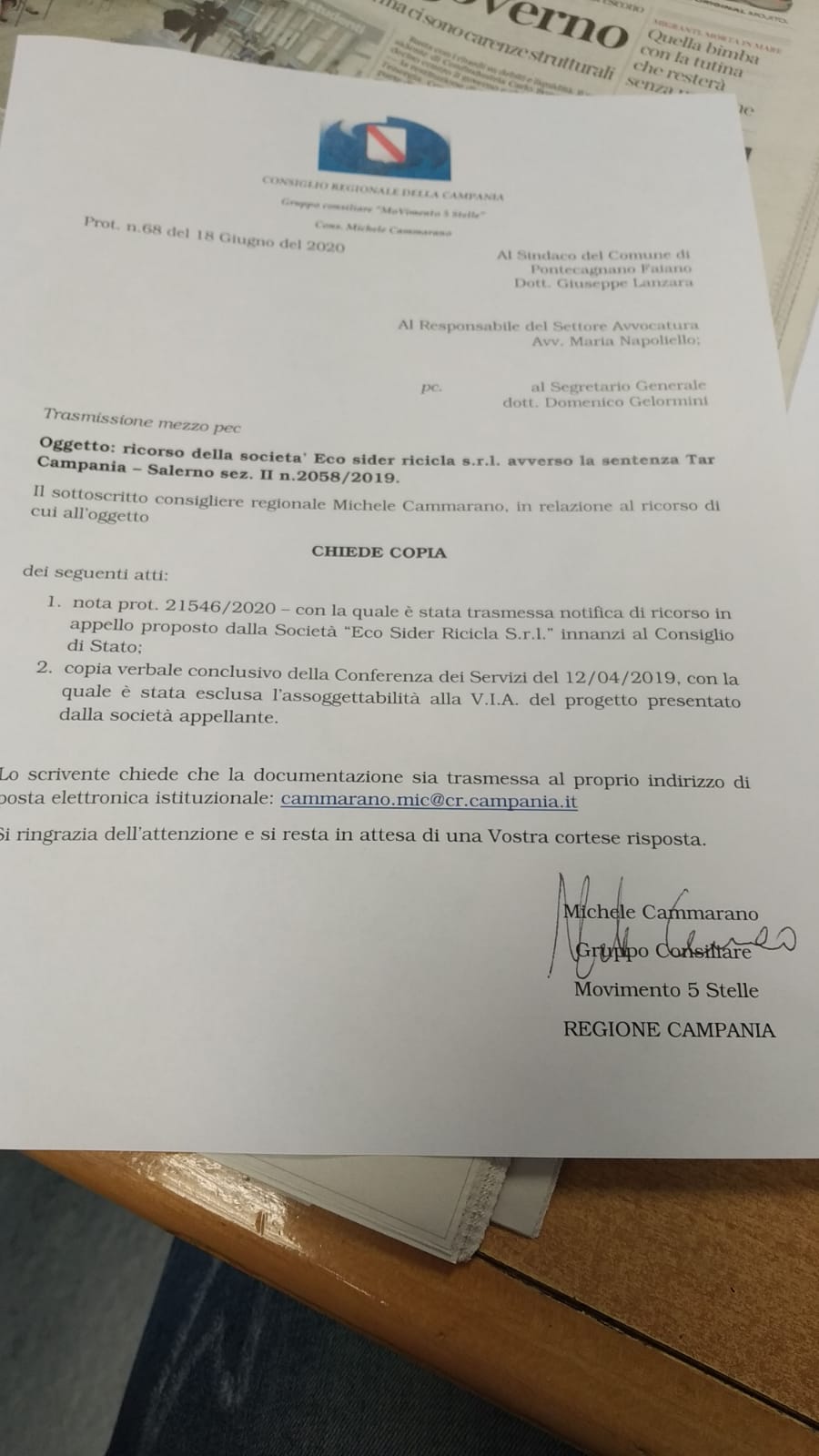 Proposizione del ricorso in appello della società “Eco Sider Ricicla srl” avverso la sentenza del TAR Campania – Salerno Sez. II N. 2058/2019, che nel novembre 2019 aveva accolto i ricorsi presentati da diversi imprenditori della zona di Via Irno e dal Comune di Pontecagnano Faiano.