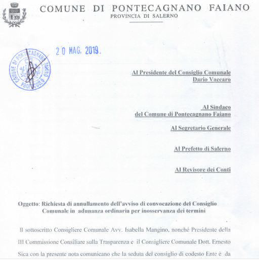 Ed è stata proprio l’Avv. Mangino, già presidente della commissione trasparenza, di concerto con il consigliere di opposizione Ernesto Sica a protocollare una nota lunedì mattina, nella quale si sottolineava il difetto insanabile nell’avviso di convocazione.