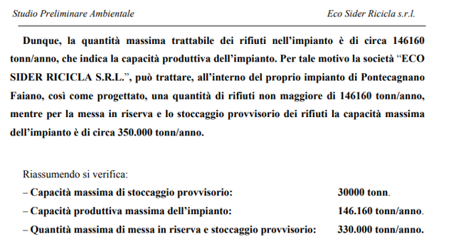 Un progetto di impianto per il trattamento di rifiuti speciali e pericolosi che dovrebbe tra stoccati e trattati portare nel territorio del comune di Pontecagnano Faiano, una quantità che supera le 400.000 tonn/anno.