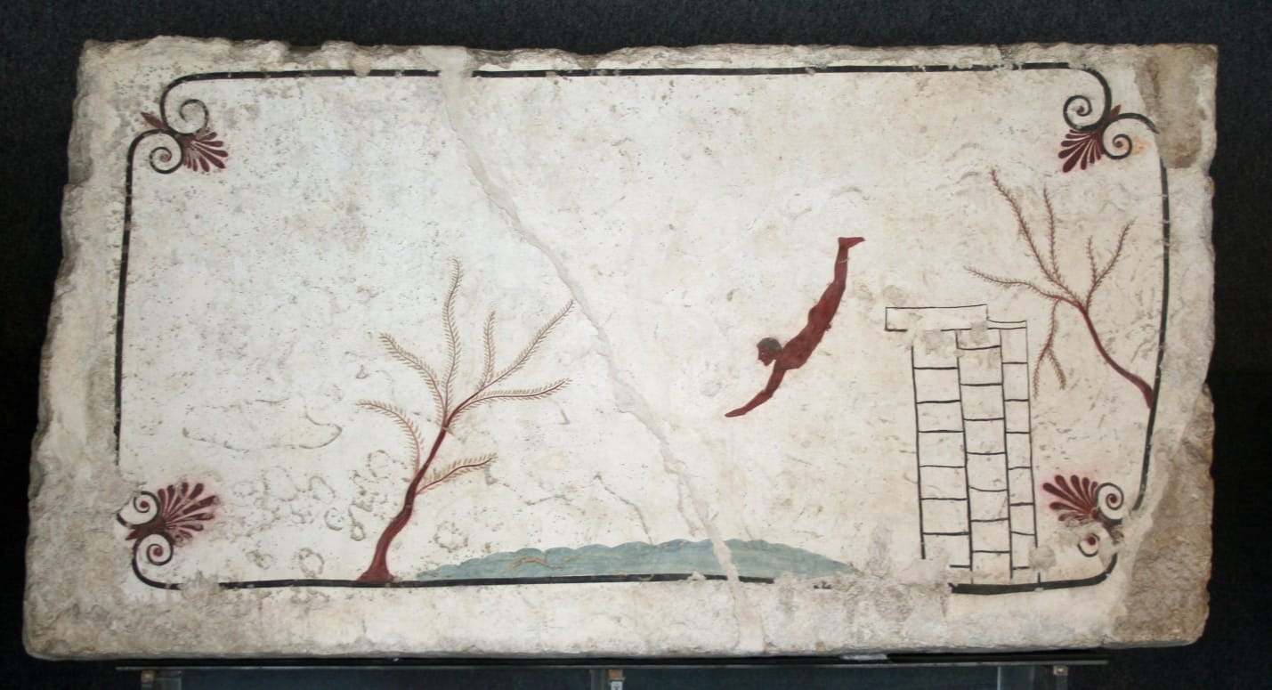 Il defunto si tuffa nell’ignoto, verso quel mondo ultraterreno che si appresta ad accoglierlo. Metafora perfetta. Ma sono tante le interpretazioni che si danno dell’opera. Lo stesso Gabriel Zuchtriegel, direttore del Parco archeologico di Paestum, ci ha spiegato i suoi molti possibili sensi: